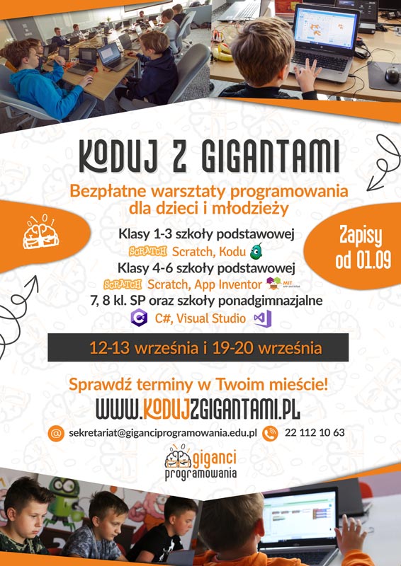 Serdecznie zachęcam Was do wzięcia udziału w bezpłatnych warsztatach z programowania! Jeśli chcecie poznać świat tworzenia gier, aplikacji mobilnych i języków programowania, wydarzenie Koduj z Gigantami jest właśnie dla Was!